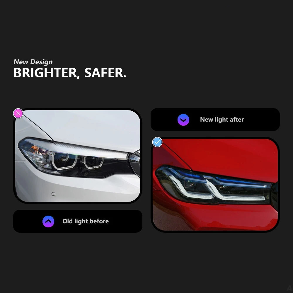 Transform your nighttime driving experience with this Laser LED Headlight Upgrade for the BMW G30 5 Series. Featuring cutting-edge LED technology and premium design, these headlights provide unmatched visibility, style, and road safety.